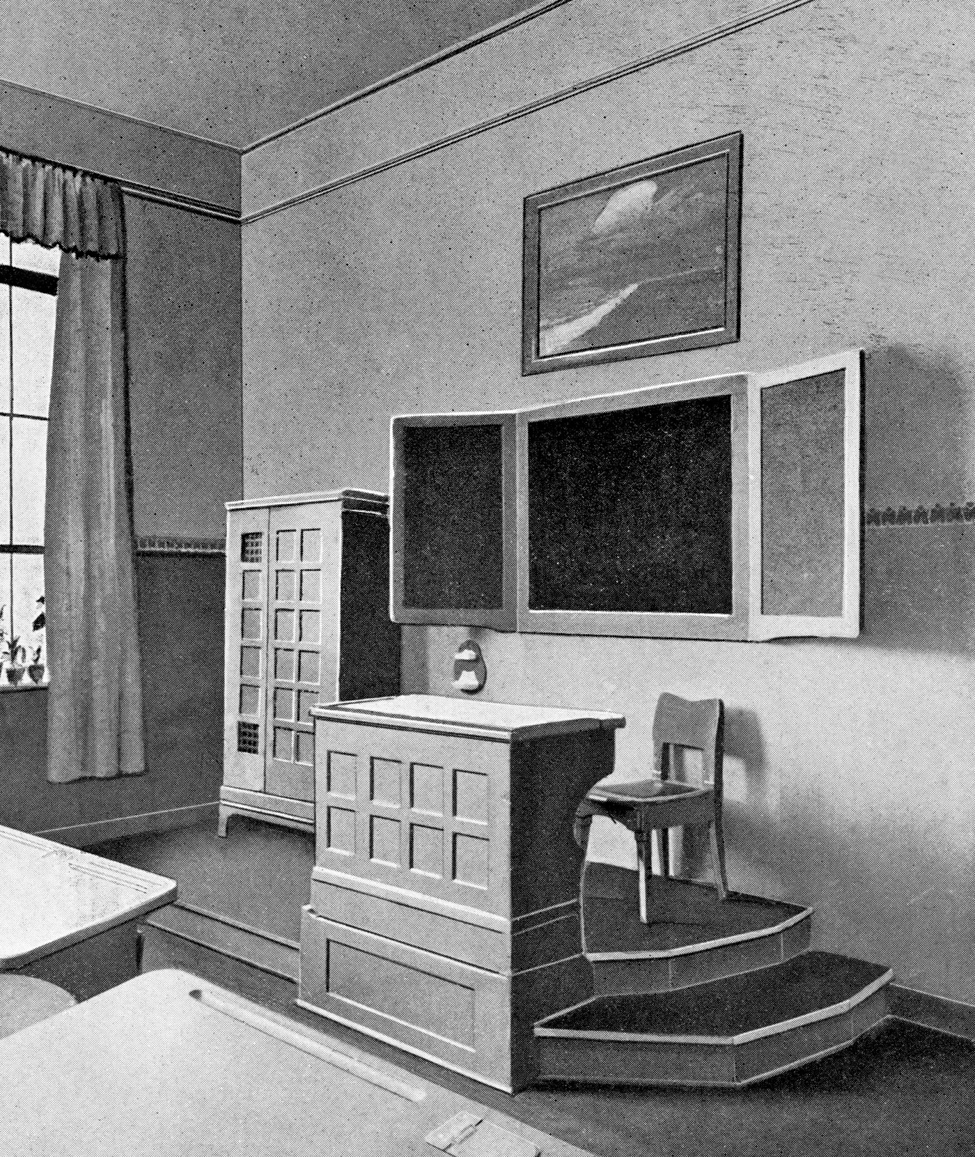 Richard Riemerschmid presented the handmade classroom cupboard in the model classroom at the Brussels World’s Fair.