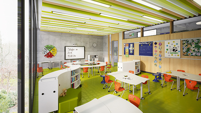 Planning of the school in Chicago by the architects’ office, Perkins+Will with Peter Brown. VS’s Panton series skid tables and chairs were used.