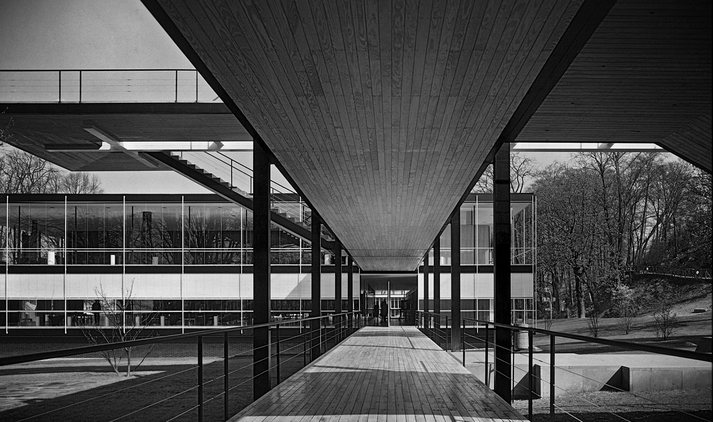 As one of the most distinguished schools architects in Germany, Günter Behnisch bucked the trend for massive integrated high schools – his are open, light and transparent. Schools in Lorch from 1973.