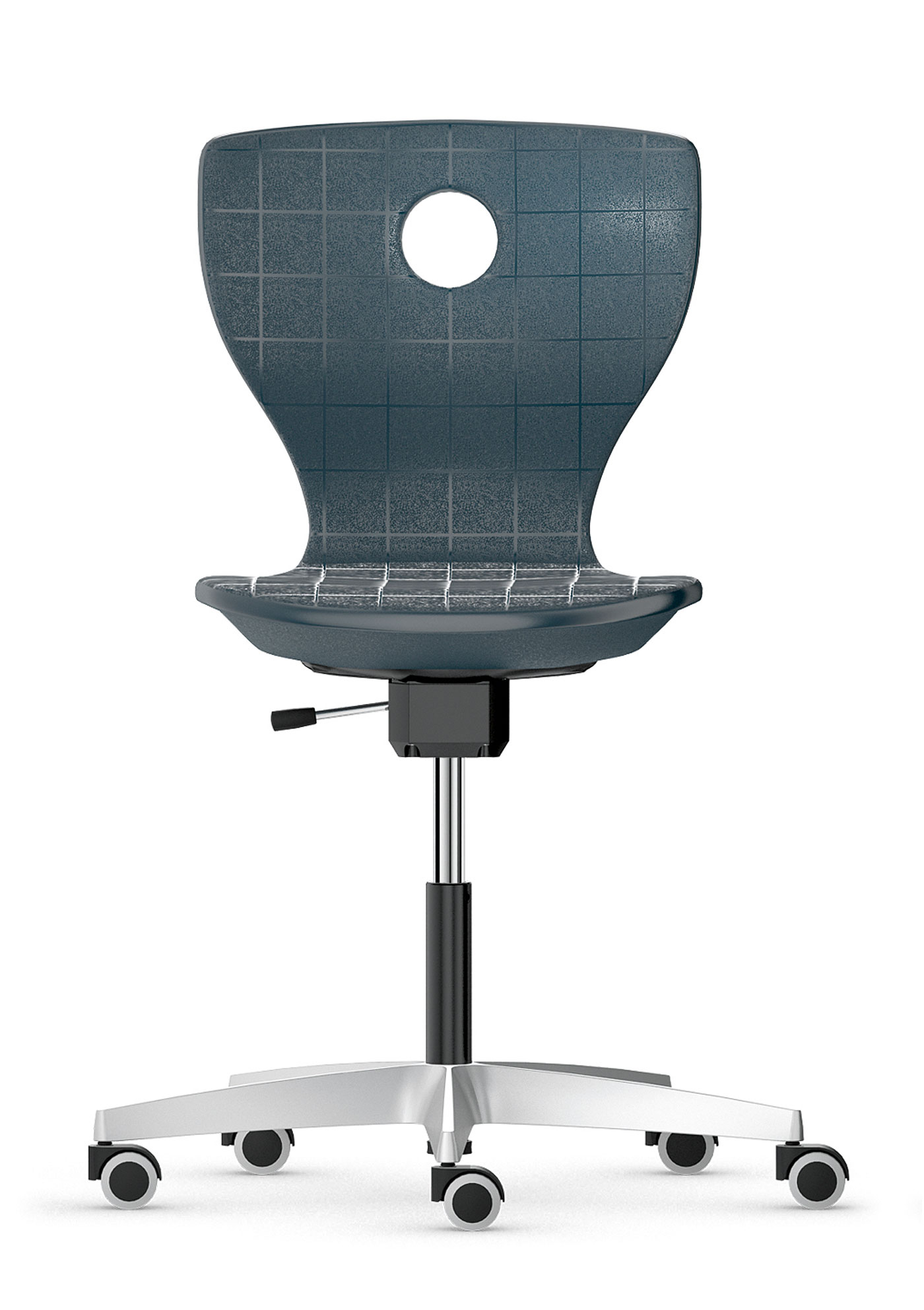 Height-adjustable swivel chair with 3D-tilt mechanism for dynamic sitting.