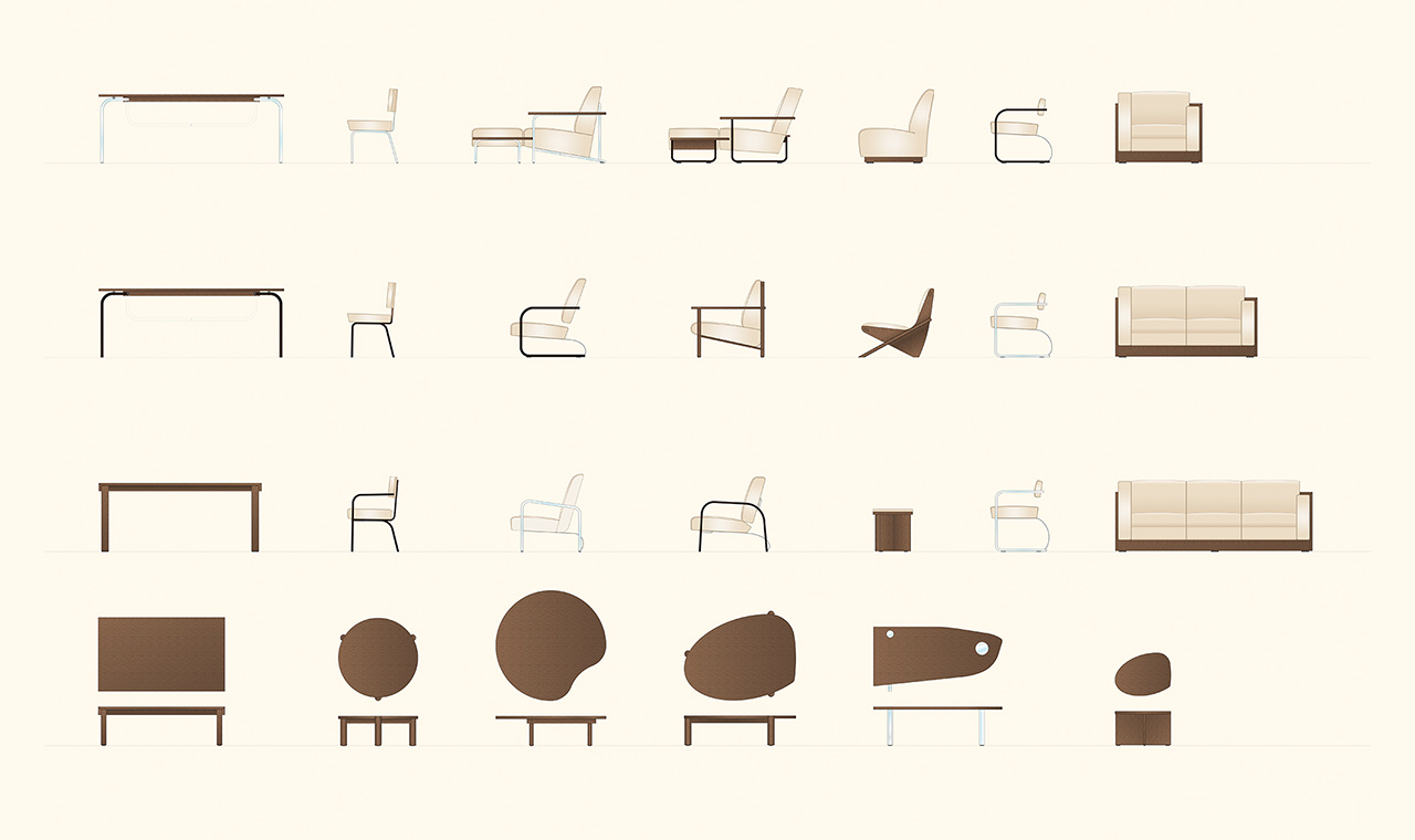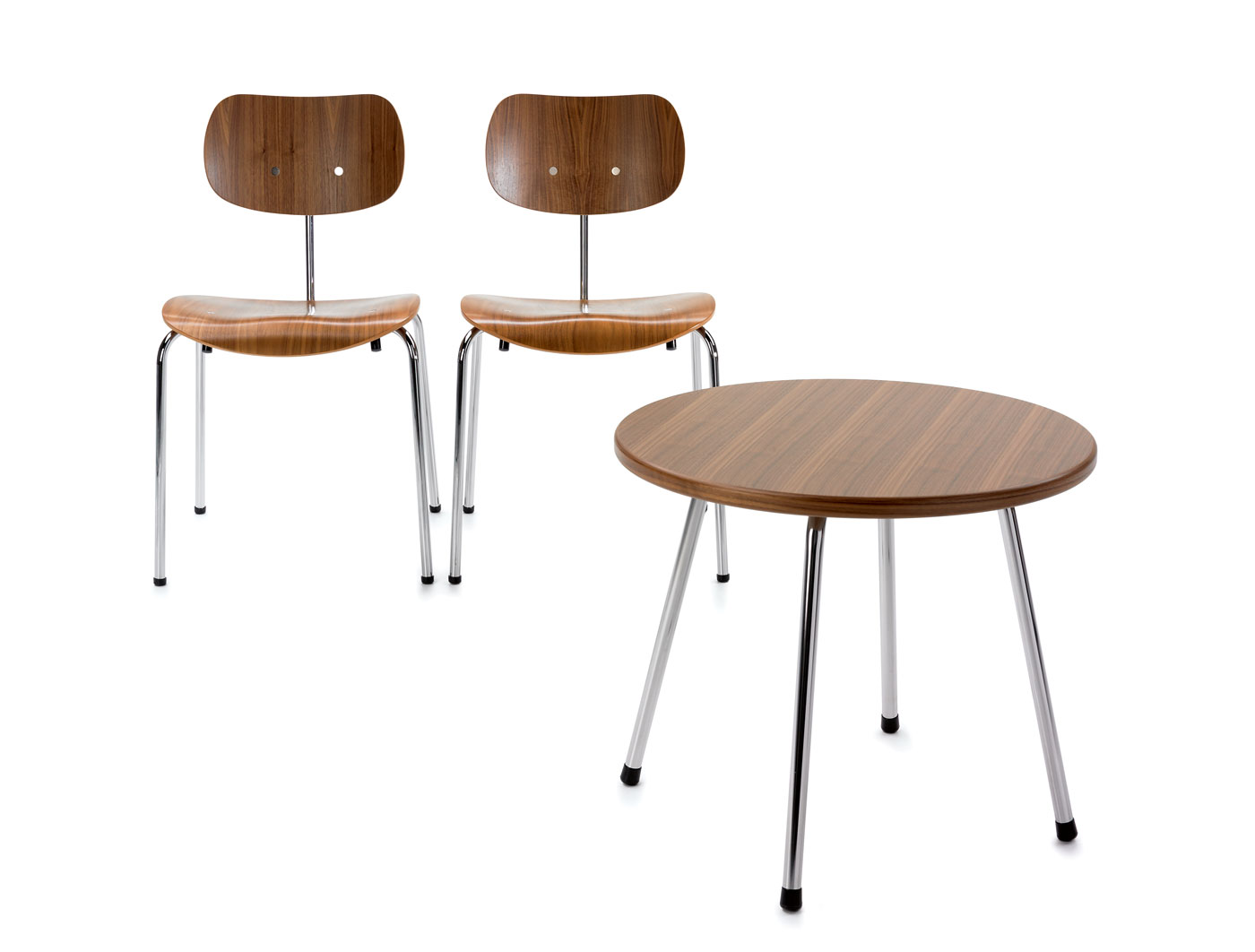 The chairs, cantilevers and dining and occasional tables in the Neutra Furniture Collection by VS.
