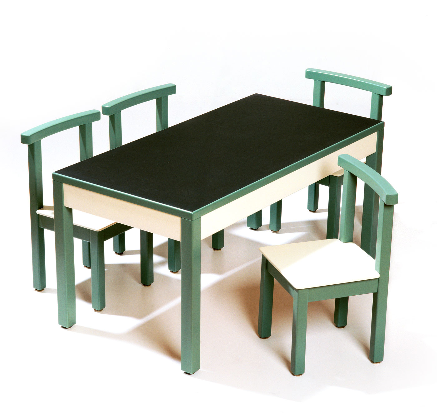 Tables and chairs designed by architects Rudolf Schwarz and Hans Schwippert in 1929 enable children to experience the feel of wood and the clear simple shapes of the furniture.