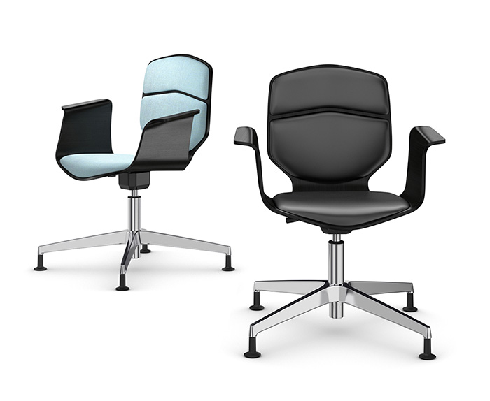 The Stratos plywood shell can also be combined with seat padding or seat and back padding. The choice here includes high quality fabric and leather, their clear color lending additional visual emphases.
